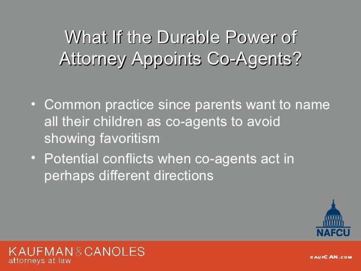 Become incapacitated (if the power of attorney is "durable"). What is a durable power of attorney? You can name co-agents or a successor agent. You can appoint an agent who lives outside Virginia; however, it may be more ... Access Doc
